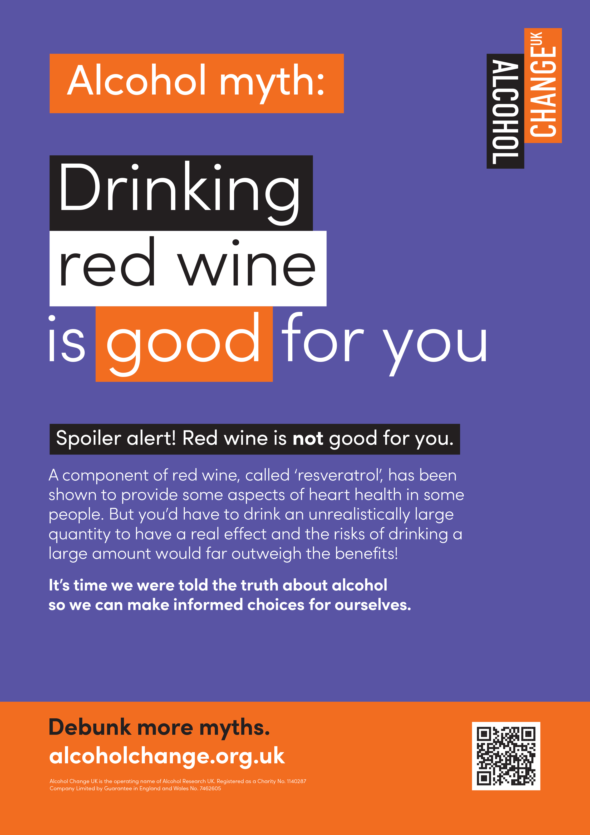 It's time we were told the truth about alcohol so we can make informed choices for ourselves. Debunk more myths by visiting the Alcohol Change website.